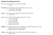 Membership Categories & Costs for the 2026/27 season are detailed below (rates are for annual membership commencing 1st April):